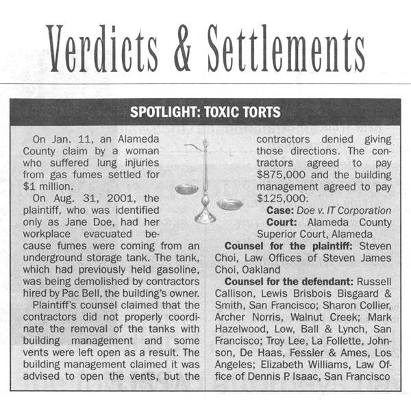 Toxic Tort $1 Million Settlement