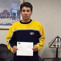 Was stopped at a red light when he was rear-ended by another vehicle.