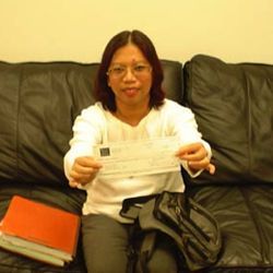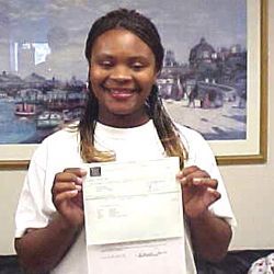 Was driving to work when another car lost control and swerved across two lanes of trave and struck her.