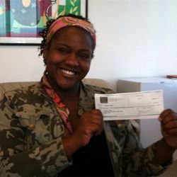 Was driving through an intersection when another driver ran a stop sign and broadsided her.